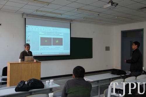 20131022日上午,日本福井大学工学部末信一朗教授应邀到我校访问,在环化学院6D123做了题为“Application of cell surface engineering for optical detection of organophisphorus compounds”(细胞表面工程技术在有机磷化合物选择性检测方面的应用)的学术报告。报告会由学院副书记许世超主持,制药工程系主任颜范勇,应用化学系王晓清等相关研究领域的老师,环化学院、材料学院的研究生及部分本科生参加了本次学术报告会。