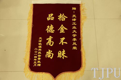 2014年5月22日,我校收到天津欧源科技公司徐景致先生寄来的感谢信和锦旗,表达对我校工程实习训练中心李凤荣老师拾金不昧行为的感激之情。