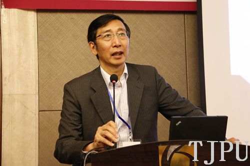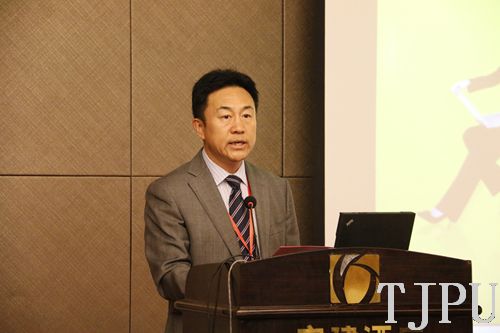 中国纺织工业联合会副会长、棉77级校友杨纪朝讲话。他说,虽然已经毕业33年,但仍经常回母校看看,回顾自己上大学的情景,仍历历在目。今天的天津工大就像中国纺织工业的发展一样,发生了翻天覆地的变化。杨纪朝副会长还详尽分析了当前中国纺织工业的基本情况。