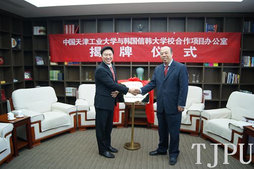 11月6日上午9:00,杨庆新校长在行政中心会议室亲切会见了访问团。会见中,杨校长首先简要介绍了我校历史、学科发展及新校区建设等情况。杨校长表示,信韩大学和我校已经实质性开展学生交换等合作项目,希望双方今后的交流合作能够“做一个,成熟一个”,希望两校国际化进程切实取得共同成功。康圣钟理事长代表信韩大学介绍了学校基本情况,并就两校之间未来具体交流合作提出了自己见解,同时热忱邀请杨校长在明年方便的时候访问该校。会见最后,杨庆新校长与康圣钟理事长共同为“信韩大学球探游戏合作项目办公室”揭牌。