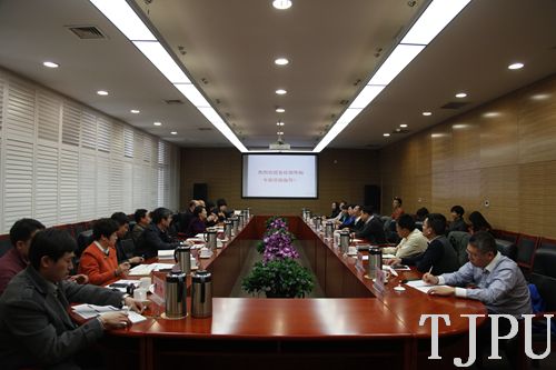 20141120日上午,市人大常委会副主任张俊芳,市人大农业与农村委员会主任委员、市人大常委会农业与农村办公室主任张志方,市人大农业与农村委员会副主任委员李建怀,市人大农业与农村委员会副主任委员、市水务局党委书记马明基,市人大农业与农村委员会副主任委员、市农科院党委书记傅润亭,市人大常委会农业与农村办公室副主任、巡视员戴国兰,市水务局总工程师杨玉刚等到我校调研多水源利用和绿色用水情况,并召开座谈会调研水资源综合利用的有效措施和方法,以期在《天津市城市供水用水条例》的修订工作和《天津市水资源综合利用》的立法工作中有效吸收我校的研究成果和成功经验,推进该项立法工作的进程。我校党委书记张宏伟教授、副校长程博闻教授陪同调研。学校办公室、科技处、教务处、环化学院、经济学院、后勤等单位的负责人及有关专家参加了座谈会。