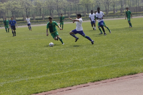 比赛在上午10点15分正式开始。比赛中双方球员积极投入,球场上精彩不断。上半场我校中外学生足球队连进两球,随后土驻华使馆足球队也不甘示弱并在下半场奋起直追,在比赛最后半小时内连进三球,一举将比分追回。在场观众热情鼓劲,也将赛场氛围一度推向了高潮。球赛最终以3:3平局落下帷幕。土驻华使馆茹斯塔莫娃大使及我校程博闻副校长分别为获奖球队及最佳队员颁发了奖杯。