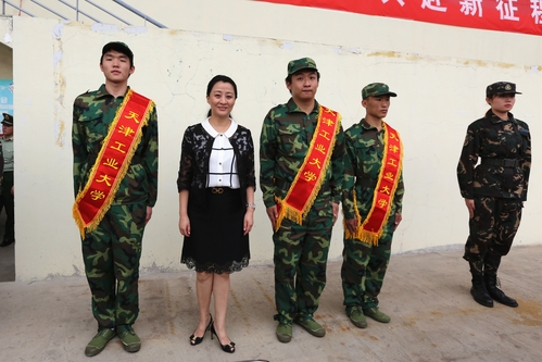 随后,刘亚男副书记为今年携笔从戎应征入伍的新兵代表佩戴绶带,杨庆新校长为2017级学生军训团授旗。武警天津市总队滨海新区支队一大队政治教导员蒋林林同志代表承训部队讲话,希望参训学员静心见学,耐心体悟,感受参加军训的意义内涵;严格要求,刻苦训练,磨练自己顽强的意志;严守纪律,争当模范,增强文明修养的自觉。