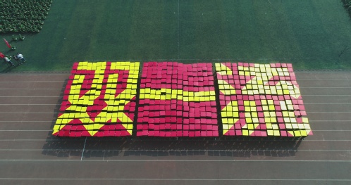 第一部分“旗帜领航”。旗帜引领前进方向,核心凝聚奋斗力量,红色点亮青春,担当诠释使命。来自五营计算机学院589名新生组成的综合方队精神饱满、气势豪迈,在场地中央组成巨幅国旗、党旗,表达了我校师生庆祝中华人民共和国成立68周年、喜迎党的十九大胜利召开的喜悦之情以及对党和国家的无限热爱。第二部分“迷彩青春”。由各个学院组成的女子队列表演、男子棍术表演、女子擒敌表演、防暴队形表演,展示了我校新生经过军训洗礼后朝气蓬勃的精神风貌和良好的军事素质。第三部分“砥砺奋进”。由计算机学院592名新生组成“天工大 双一流”,全场高唱《球探游戏校歌》,表达了我校师生对于入选“双一流”建设高校及学科名单的欣喜之情,以及建设好国内一流、有特色高水平工业大学的雄心壮志和坚定决心。武警天津总队滨海新区支队一大队政治教导员蒋林林同志宣读《表彰决定》,表彰了军训工作中涌现出的一批优秀个人和先进集体。