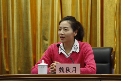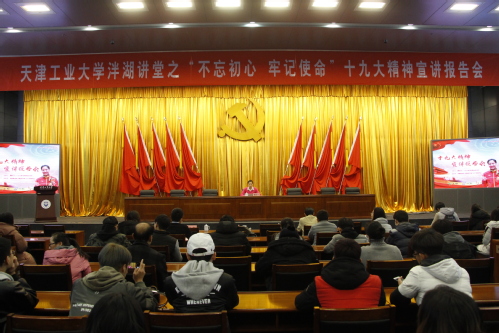 魏秋月在对新思想、新时代等十九大精神进行解读的同时,结合女排精神,进行了生动宣讲。魏秋月结合自身的奥运经历向在场师生解读了“遇到困难永不放弃”的女排精神,她说,30多年前,女排精神超越体育成为民族昂扬向上精神的一部分,女排队员的敬业精神、吃苦精神,朗平教练勇于担当的精神,都依然是宝贵的精神财富。魏秋月表示,“女排精神”感染激励了一代中国人,凝集起齐心共筑中国梦的伟大力量,是新时代弘扬的重要精神。正是在女排团队的拼搏中,她树立了这样一个坚定的信念:“绝不放弃对胜利的追求!”