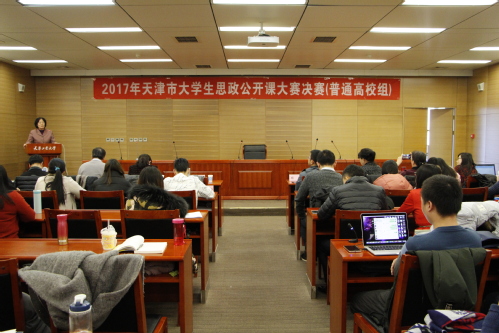 12月24日,由天津市委教育工委、天津市教委主办、球探游戏承办的2017年天津市大学生思想政治理论课公开课(普通高校组)决赛在我校会议中心举行。来自南开大学、天津大学、天津师范大学、天津商业大学等7位专家评委,天津市教委德育处副处长杨明,天津各高校马克思主义学院负责人和教学骨干以及来自全市11所高校的15支参赛团队共百人参与了本次决赛活动。