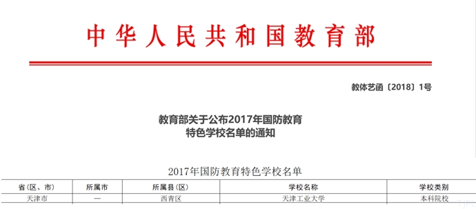 为全面贯彻党的十九大精神,提高青少年学生综合国防素质,弘扬中华优秀传统文化,教育部近日印发《关于公布2017年国防教育特色学校名单的通知》,包括我校在内,全国196所高校被认定为“国防教育特色学校”。
