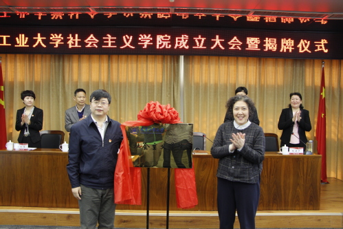 姜国斌处长和连洁书记共同为球探游戏社会主义学院进行了揭牌。(审稿:党委统战部 张健华 )