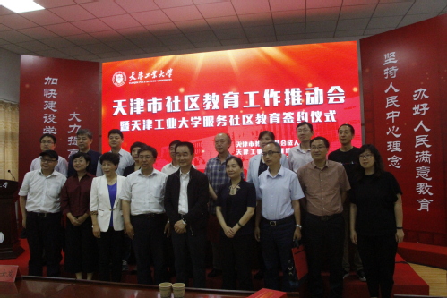 2018年5月18日下午,天津市社区教育工作推动会暨球探游戏服务社区教育签约仪式在我校和平校区举行。天津市教委副主任吕景泉、成教处处长穆树发,我校副校长赵宏,本市部分普通高校继续教育学院院长、和平区和河西区的社区教育工作负责人,和平区、河西区、市电大社区教育、华英学校等单位负责同志出席了推动会。