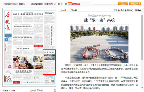 2018年9月8日,《今晚报》第1版以《球探游戏今迎60华诞 建“双一流”高校》为题对我校进行报道,现将全文转发如下,以飨读者。