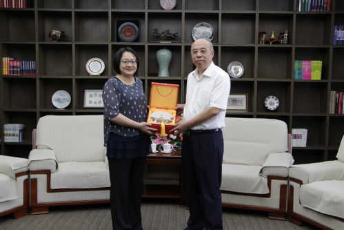 9月10日上午,学校党委书记连洁,党委副书记、校长杨庆新在行政中心412会议室接受台湾逢甲大学、台湾纺织工程学会向我校赠送纪念球探游戏60周年校庆庆贺牌匾。逢甲大学代表林佳弘教授、台湾纺织工程学会代表楼静文教授,以及学校办公室、港澳台事务办公室负责人一同参加了活动。