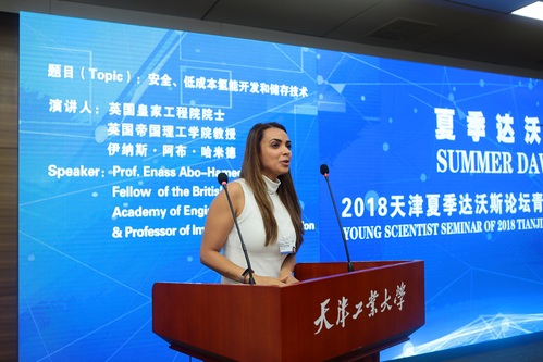 本届达沃斯青年科学家活动主题为“智能科技·创新未来”,中外青年科学家来自生物医药、大数据、计算机科学、电子信息、材料科学等领域,面对面进行科技人文交流。首先进行的青年科学家交流会由我校校长杨庆新主持。天津大学教授段学欣以《千兆赫兹声学技术在化学传感及生物医药领域的应用》为题作了发言,他重点介绍了自己的研究方向“微纳生化传感器”,并详细地展示了其特点、实验取得的研究成果和理想目标。英国皇家工程院院士、英国帝国理工学院教授伊纳斯·阿布·哈米德以《安全、低成本氢能开发和储存技术》为题作了发言,从必要性与可行性两个方面简要介绍了“如何减少大气污染,是否能够用氢能源解决”的这一世界性议题。