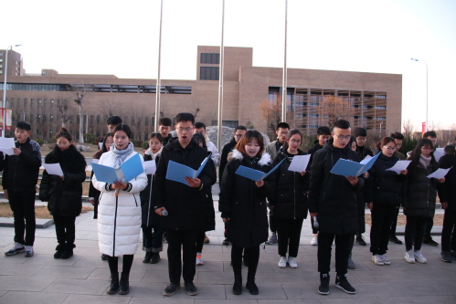 首先举行了庄严肃穆的升国旗仪式。7时整,鲜艳的五星红旗在国旗护卫队护卫下缓缓入场,现场师生齐声高唱《中华人民共和国国歌》,五星红旗迎着朝阳冉冉升起。随即,大家庄严肃立,向南京大屠杀死难同胞脱帽致哀一分钟。默哀仪式后,“青年马克思主义者培养工程”学员和“卓越管理者培养计划”学员代表集体诵读《和平宣言》,表达了青年学子对南京大屠杀死难同胞的悼念与哀思以及勿忘国耻、缅怀先烈、珍爱和平、圆梦中华的拳拳之心和报国之志。最后,师生代表在“勿忘国耻 圆梦中华”的纪念横幅上签名追忆。