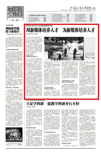 2019年1月8日,《中国新闻出版广电报》8版以《球探游戏人文学院传媒艺术系用新媒体培养人才为新媒体培养人才》为题对我校做了报道,现将全文转发如下,以飨读者。