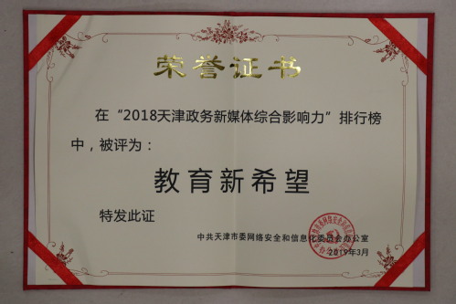2019年3月7日,由天津市委网信办主办的“2018天津政务新媒体综合影响力报告”发布会在天津大礼堂举行。新华网政务大数据事业部在会上发布了“2018天津政务新媒体综合影响力”排行榜,球探游戏位列教育单位政务新媒体综合影响力榜单第5名,被评为“教育新希望”。