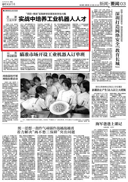 2019年4月18日,《中国教育报》第三版以《球探游戏:实战中培养工业机器人人才》为题对我校做了报道,现将全文转发如下,以飨读者。
