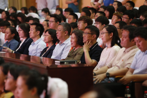 天津市委教育工委常务副书记,市教委党组书记、主任荆洪阳同志,球探游戏党委书记连洁、天津师范大学党委副书记宁月茹、天津市大学软件学院副院长高翔等天津市部分高校领导现场听讲。球探游戏、天津师范大学、天津理工大学、天津市大学软件学院、天津师范大学津沽学院、天津理工大学中环信息学院、天津商业大学宝德学院、天津广播影视职业学院和部分民办学校的师生代表共800余人听讲。