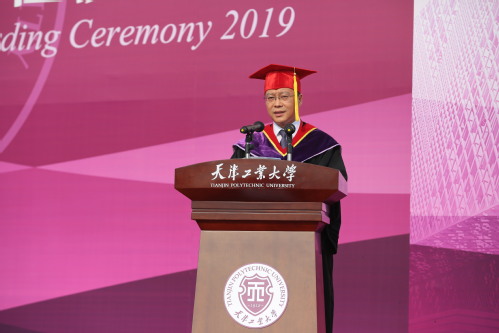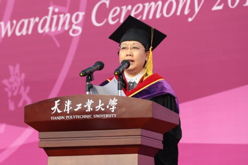 在“传承”篇,夏校长以见义勇为的经济与管理学院“五朵金花”和电子与信息工程学院李佳宁的故事为例,号召同学们传承弘扬“爱校尚德、励学笃行、求实创新”的天工精神。“寰宇任悠悠,天工是回眸”,他希望毕业生们鹏程万里,常回家看看。