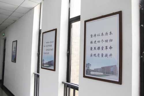 文化滋养心灵,文化涵育德行。为充分发挥公共教学楼宇作为学习场所的育人功能,着力强化思想政治引领,2019年6月16日,学校在第一、二公共教学楼内精心设置了150余幅主题宣传画框,装饰在两教学楼宇A、B、C三区一、二层的走廊墙壁上,形成了一道靓丽的风景,努力让每面墙都“活”起来,让师生在耳濡目染中受到启迪、接受教育