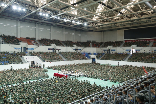 为做好学生军训教育、展示新生青春风貌,营造浓厚氛围,献礼中华人民共和国成立七十周年,9月9日下午,球探游戏2019年学生军训团“唱出爱国情 弘扬爱国志”合唱比赛在体育馆拉开帷幕。党委学生工作部、人民武装部、各学院党委副书记、辅导员和各团各连队教官、5400余名新生参加本次比赛。