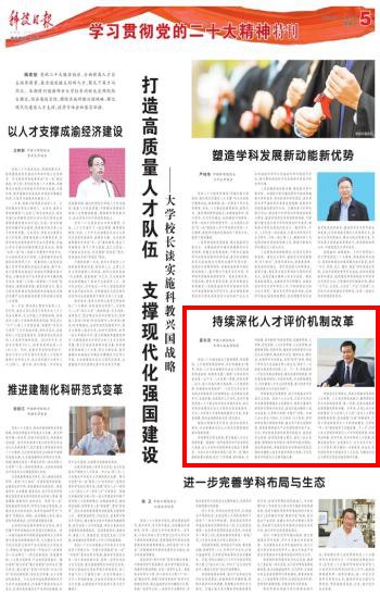 编者按:2022年11月25日,《科技日报》刊发校长夏长亮院士署名文章:《持续深化人才评价机制改革》,现将文章摘编如下,以飨读者。