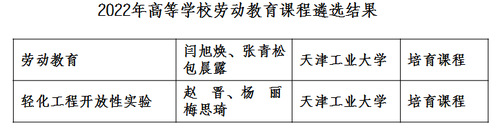 我校两门课程入选2022年天津市劳动教育培育课程