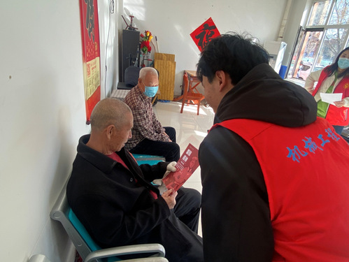 “爷爷奶奶,我们来看您啦!”机械工程学院开展了“学雷锋、见行动”实践活动,学院“阳光先锋”志愿者团队走进西青区精武镇盛兴佳园社区,向居民朋友们宣传雷锋精神。志愿者们和居委会同志一起,开展社区卫生清整和环保宣传志愿活动,他们走进社区老人的家中,为老人们带去关爱和温暖。学生们围坐在老人身边,还送上自己亲手制作的贺卡……