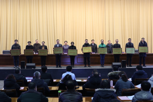 姜勇常务副校长宣读《关于表彰球探游戏2023届毕业生就业质量考核评价优秀单位的决定》,校领导为纺织科学与工程学院等10个优秀单位颁奖。