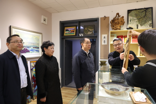 李绍洪副主席一行先后参观了我校郑勇工作室、中华优秀传统文化与技艺国际传承创新基地。在座谈交流中,沈江书记介绍了基地建设的基本情况和未来规划。她指出,近年来,学校将泥人张彩塑、杨柳青木版年画、风筝魏制作、陈氏制瓷、刻砖刘等各类国家级、省市级非物质文化遗产引入基地,打造了以“教室里的博物馆、博物馆里的教室”为突出特征的育人新生态,并通过共建中华文化主题金课、打造中华文化体验工作坊、建设校外非遗实习体验基地等举措,全力推进国际教育高质量发展,为学校“双一流”建设提供重要支撑。