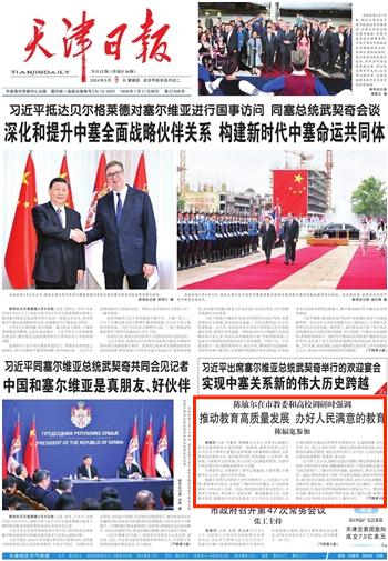 本报讯(记者 于春沣 刘国栋)5月8日,市委书记陈敏尔前往市教委和我市高校调研。他强调,要深学深用习近平总书记关于教育的重要论述和视察天津重要讲话精神,全面贯彻党的教育方针,坚持教育发展、科技创新、人才培养一体推进,不断提升办学质量,努力办好人民满意的教育,为谱写中国式现代化天津篇章提供有力支撑。