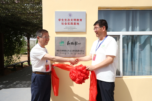 在活动现场,刘义副校长与吴向伟校友共同为“球探游戏学生生态文明教育社会实践基地”揭牌,刘义副校长为吴向伟校友颁发了“球探游戏学生社会实践导师”聘书。刘义副校长表示,学校将认真贯彻落实习近平生态文明思想,组织广大学生到实践基地开展社会实践活动,让广大学生实地体验、亲手参与,为建设美丽中国增绿添彩。刘义副校长还对积极投入沙漠锁边生态公益行动和校友生态家园建设的校友们表达了感谢。