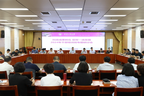 2024年7月2日上午,我校在会议中心第七会议室召开以“科技成果转化,促‘双一流’发展”为主题的干部培训班专题研讨会,副校长李越主持会议并讲话。研讨会由工业技术研究院与党校共同主办,学校全体中层正职干部参加。