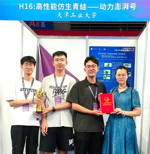 获得国家级一等奖的作品是“高性能仿生青蛙——动力澎湃号”,由我校工程教学实习训练中心贾敏瑞老师和张天缘老师共同指导,机械工程学院张维伦、吴阳、辛启源和电子与信息工程学院熊正泰同学设计制作。该作品以青蛙为仿生原型,以轻量化设计为目标,依据其仿生学原理,实现了超自身尺寸近二十倍的长距离跳跃,其创新设计大大节约了制作时间成本以及人力成本,未来可推广在搜索和救援方面,具有很强的应用前景。获得国家二等奖的作品有机械工程学院作品“云智能胡萝卜收播一体机”(队员:张成辉、张晟国、肖敬函、余月涯、李朴恩,指导老师:李雅峰、张天缘)以及工程教学实习训练中心作品“小型自动多功能萝卜播种机”(队员:王小斌、邢凯、郑雨婷、杨磊、孔博,指导老师:刘健、沈振乾)。获得国家三等奖的作品是工程教学实习训练中心作品“自动播种覆膜协同农用车”(队员:封斯瀚、况朝琛、李玉晗、苏一博、李雨阳,指导老师:郭玲、张天缘)。
