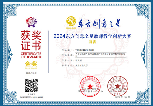 近日,我校艺术学院范文娲、李凌教学团队的《以“学研练赛”为学习模式的中西服装史课程教学创新实践》课程在2024东方创意之星教学创新大赛中喜获国赛金奖。