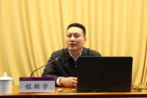 2024年11月21日下午,我校在学术中心举办党史学习教育专题报告会。天津大学马克思主义学院程斯宇副教授应邀作专题报告。校党委理论学习中心组成员,学校全体处级干部,党外人士代表,2024年第四期青年干部及骨干教师培训班学员、党外代表人士培训班学员代表,教师代表,学生代表参加。会议由校党委宣传部部长刘玉靖主持。