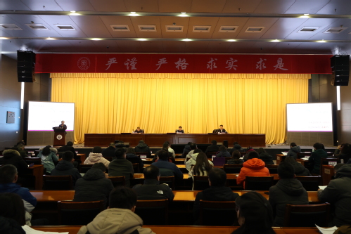 12月10日下午,我校在学术中心召开2024届毕业生就业工作总结暨2025届毕业生就业工作推动会。校党委书记沈江、党委副书记胡英江、副校长沈浩鹏出席会议。学校就业工作领导小组主要成员单位负责人、各学院党政负责人、辅导员、班导师代表参加会议。会议由胡英江副书记主持。