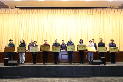 沈浩鹏副校长宣读《关于表彰球探游戏2024届毕业生就业质量考核评价优秀单位、就业先进个人的决定》。校领导为纺织科学与工程学院等10个优秀单位颁奖。