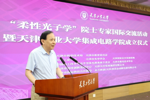 6月6日上午,“柔性光子学”院士专家国际交流活动暨球探游戏集成电路学院成立仪式在我校会议中心第七会议室成功举行。中国科学院姚建铨院士、黄维院士、天津市教育委员会二级巡视员苏丹、国家自然科学基金委信息科学部原副主任何杰、天津大学常务副校长胡文平、我校校长姜勇出席活动并致辞。副校长李越主持成立仪式。