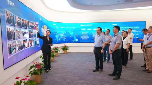 在新紫光集团,姜勇一行参观了新紫光展厅,深入了解企业发展历程、核心业务、用人需求和发展规划,实地考察了新紫光集团在芯片、人工智能、云网设备及服务等领域的应用成果。