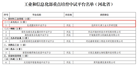 球探游戏沧州研究院先进膜材料中试平台入选国家工信部首批重点培育中试平台名单